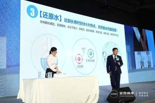 市场优秀领导人卿晓萍女士、王帝力先生、钟小容女士带来了安然纳神多功能水机套装的使用体验,他们从消费者的角度介绍了产品的优势,并为大家分享了安然事业的优势,赢得会场阵阵掌声。