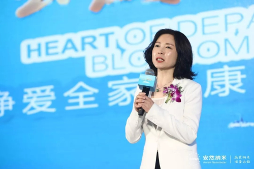 安然公司营销副总裁徐宁女士为大会致开场辞,她代表安然公司对出席本次大会的家人们表示热烈的欢迎。安然公司成立15周年以来,秉承着“愛•感恩”的企业文化,跟随国家的步伐,努力与国家同频共振,把人民健康放在优先发展的战略地位,不断对产品进行研发与升级。安然公司深知水是生命之源,是人们日常不可或缺的资源,为此我们有责任有义务推出安然纳神多功能水机套装,为消费者提供健康水质。