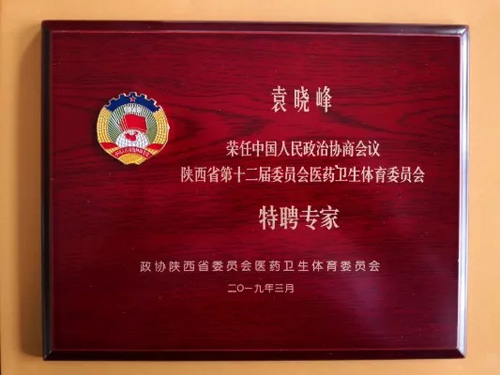 近日,三八妇乐集团董事长袁晓峰教授被政协陕西省委员会医药卫生体育委员会聘请为“特聘专家”。