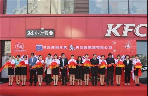 校方代表和企业方代表一同到肯德基有限公司武清门店进行剪彩和挂牌仪式,双方代表分别致辞并合影留念,双方代表就学生未来实习的各个环节进行了深入交谈。