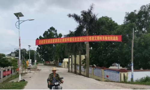 化州市杨梅镇文朝岭至敬老院这段道路由于年久失修,每每遇上雨水季节,道路总是泥泞不堪,导致群众出行困难,车辆无法正常行驶,而这也成为制约着镇敬老院各项工作开展、家乡经济建设以及与外界进行沟通交流的拦路虎。因此,乡贤陈怀德先生深入群众之中,倾听群众意见,了解群众疾苦,尽力为群众排忧解难,并牢记在心里,他提出将全额出资共250万元人民币对该段道路进行“硬底化”升级,升级后的该段道路将有效改善广大群众的出行环境,为乡亲出行保驾护航,助力发展化州、发展杨梅。