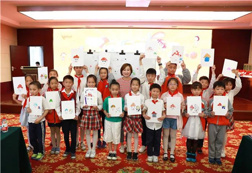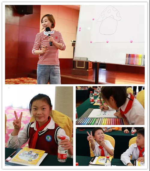 参观结束后,同学们来到了安惠会议中心,这里一场别开生面的六一主题活动正在等待着他们。安惠公司总经理助理、安惠江海志愿者服务总站站长陈莹莹向同学们介绍了蘑菇的分类和营养价值,讲述了《蘑菇吃吃吃》一书的创作初衷和创作过程,还给同学们上了一堂绘画课,教大家如何快速画出神态萌萌的卡通蘑菇。