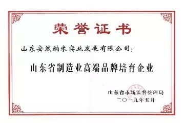 安然获山东省制造业高端品牌培育企业荣誉称号