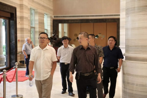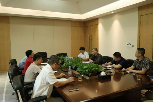 ▲黎总(前排右一)与胡教授(前排左一)洽谈中
