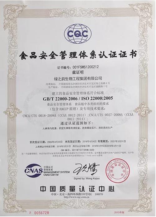 评审结束后,评审专家组一致认为绿之韵各项审核项目均达到了ISO9001质量管理体系、ISO14001环境管理体系及HACCP食品安全管理体系的规定标准,顺利通过此次管理体系认证复审。我们相信管理体系的建立和贯彻运行,将有助于公司的不断提升,在市场竞争中树立良好的企业形象和信誉,对公司的长远发展具有重要意义。未来,绿之韵集团将继续坚持“关爱生命,绿色产品,天然环保,质高品优”产品理念,品质为先,精益求精,为广大消费者和全社会提供更加优质的产品和服务。
