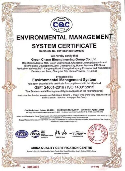 ▲ISO14001:2015环境管理体系认证证书