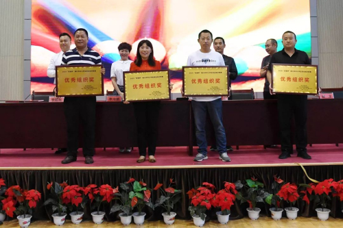 获奖优秀组织学校获颁荣誉牌匾并与领导合影