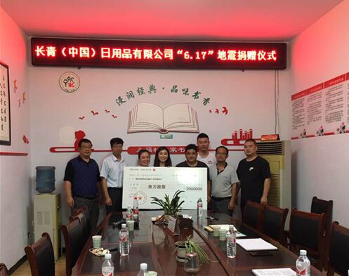 长青四川公司为宜宾地震灾区爱心捐款3万元