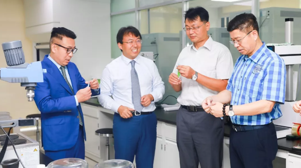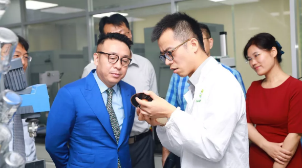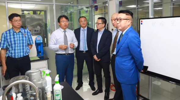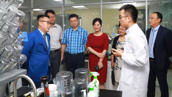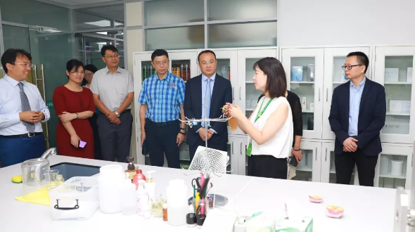 上午9时58分,会议正式开始。徐建成董事长和各位嘉宾在首席科学家姜春鹏的陪同下,共同参观了实验室。科研人员向大家介绍了工作站尖端的设备设施,通过美白功效离体验证试验展示了与Ashland(美国亚什兰)中国实验室合作研发的温和摩擦性能美白牙膏,邀请大家体验了便携式漱口水,介绍了新型植物护肤研究、微生物发酵产物在化妆品领域的应用、细胞自噬机制、大分子透皮吸收技术以及新型纳米材料应用技术等方面的特色研究领域。
