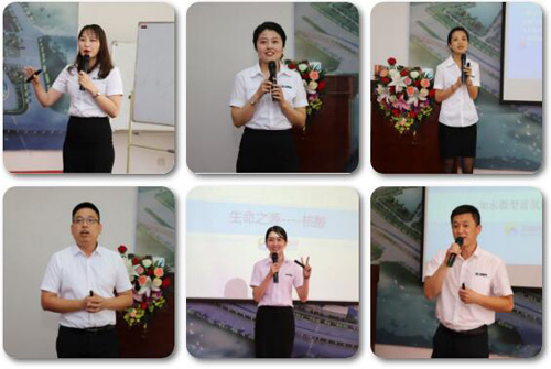 参加比赛的讲师针对核酸、鹰嘴豆纳豆片、富氢制水器、迪悠、迪施等产品进行精彩宣讲。双迪公司总裁刘洪及闫军、董长勇、鲁飞、杨磊峰、张磊等公司高管担任评委。
