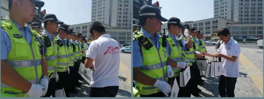 “粉丝带飘起来”富迪兰州志愿者爱心万里行烈日慰问执勤交警