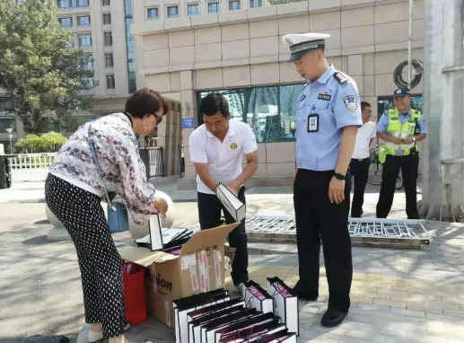 接过爱心志愿者赠送的清凉矿泉水时,交警同志们纷纷欣喜道谢,连忙向志愿者回以敬礼,急匆匆地喝下几口便赶快回到工作岗位上服务群众便利出行。