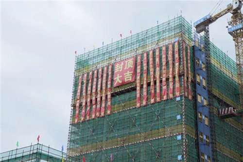 总裁李冠华先生宣布封顶仪式开始,各领导挥动锹铲,协力浇注最后一方水泥。让我们为这一历史性时刻欢呼,热烈庆祝一期项目顺利封顶。