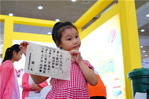 有了一系列视觉冲击,现场还鼓励大家动动手,“活字印刷”区和“手工布书”体验区也是不容错过。体验涂墨、拓压等工序,活字印刷术听就听得多了,小朋友见还是第一次见,还有机会亲自体验一番,感受浓浓书香氛围。印刷的内容节选自江门籍思想家、教育家梁启超的爱国散文《少年中国说》。活动现场,江门广播电视台副台长林柏峰也饶有兴趣体验了一回活字印刷。