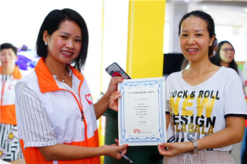在活动现场,除了激发儿童阅读乐趣的体验外,无限极乐善会志愿者身体力行,踊跃地参与“捐书点”的闲置图书募捐活动,呼吁更多市民关注乡村阅读,让乡村儿童有书读、读好书,共同推动江门阅读文化建设和发展,本次募捐的图书将捐赠给五所童梦阅读空间。三天活动(7月12~14日),共有52人次捐赠了超过100本的闲置图书,并领取了公益证书。