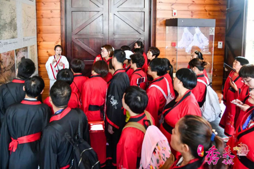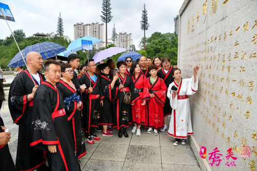 在导师的讲解下,家人们对阳明文化园有了初步的认识。为了加深家人们的体验,安然公司特地为家人们准备了汉服,并邀请到了贵州阳明研究院会员、中国阳明文化园龙冈书院讲师、中国阳明文化园培训师许晓梅老师带领大家一起诵读阳明先生经典文章《教条式龙场诸生》、学习汉代祭拜礼仪。伴随着“起!拜!兴!”的声音,家人们庄严肃穆的完成了祭拜阳明先贤仪式。