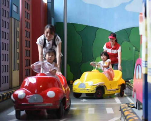 “小候鸟”们在志愿者的陪同下体验广东科学中心的项目