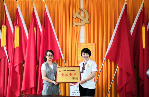 晋宁区宝峰街道宣传委员郭娅娟代表街道党工委为云南分公司颁发“爱心企业”荣誉牌匾,感谢完美公司的无私奉献。同时,她也向云南分公司党支部发出“双联双建”邀请,推动基层党建工作落地生根,创新共赢。