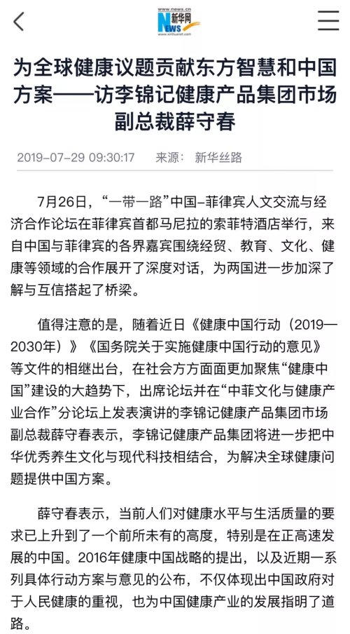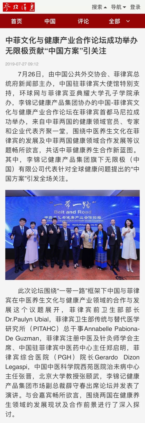 7月26日,“一带一路”中国-菲律宾人文交流与经济合作论坛在菲律宾首都马尼拉举行。作为主论坛的支持单位和分论坛——中国-菲律宾文化与健康产业合作论坛的协办单位,李锦记健康产品集团深入参与了这场海外论坛。
