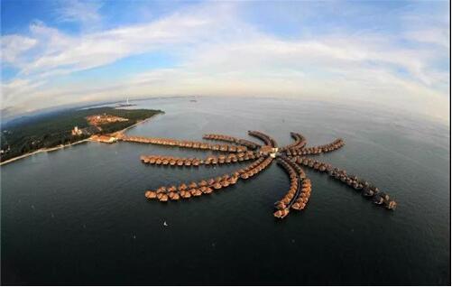 位于马来西亚森美兰州著名海滩波德申的海上别墅——大红花丽昇水上屋,拥有着得天独厚的地理环境,不但坐拥马六甲海峡的黄金海岸线美景,其设计由世界知名的获奖团队操刀,空间宽敞、装饰高雅,尤其是风景如画的海上别墅在设计上更是精妙,从高空往下俯瞰,海上别墅组成了一朵在马六甲海峡上绽放的巨型马来西亚国花——大红花。过去几年中,酒店曾接受来自印度、印尼及马来西亚本土多家电影公司取景拍摄。