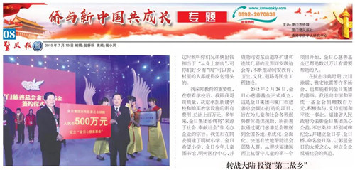 以下原文刊载自:2019年7月19日发行的《鹭风报》的“侨与新中国共成长”专题报道。
