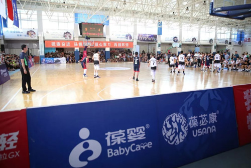 USANA葆婴大家庭的伙伴们在赛场上为青少年选手们加油打气,目睹了一场又一场精彩纷呈、斗志昂扬的篮球比赛。小雏鹰们个个精神抖擞、全神贯注,在赛场上激烈地对战。