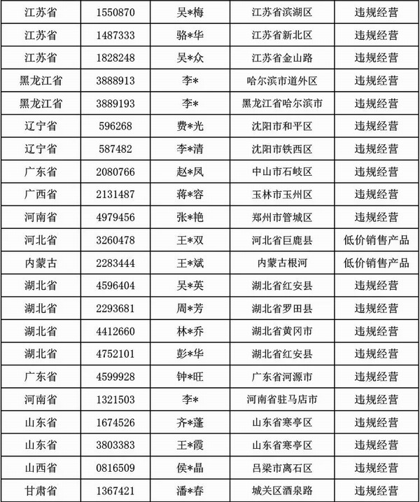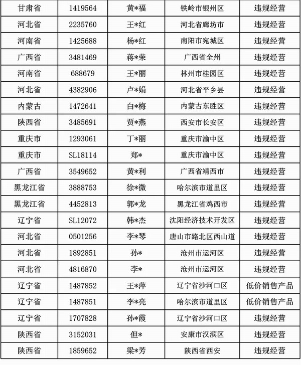 1-7月违规经营处理人员名单