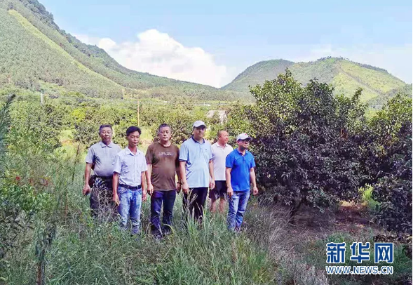 金融局驻村干部和康美药业专家在湖江村进行调研。新华网发