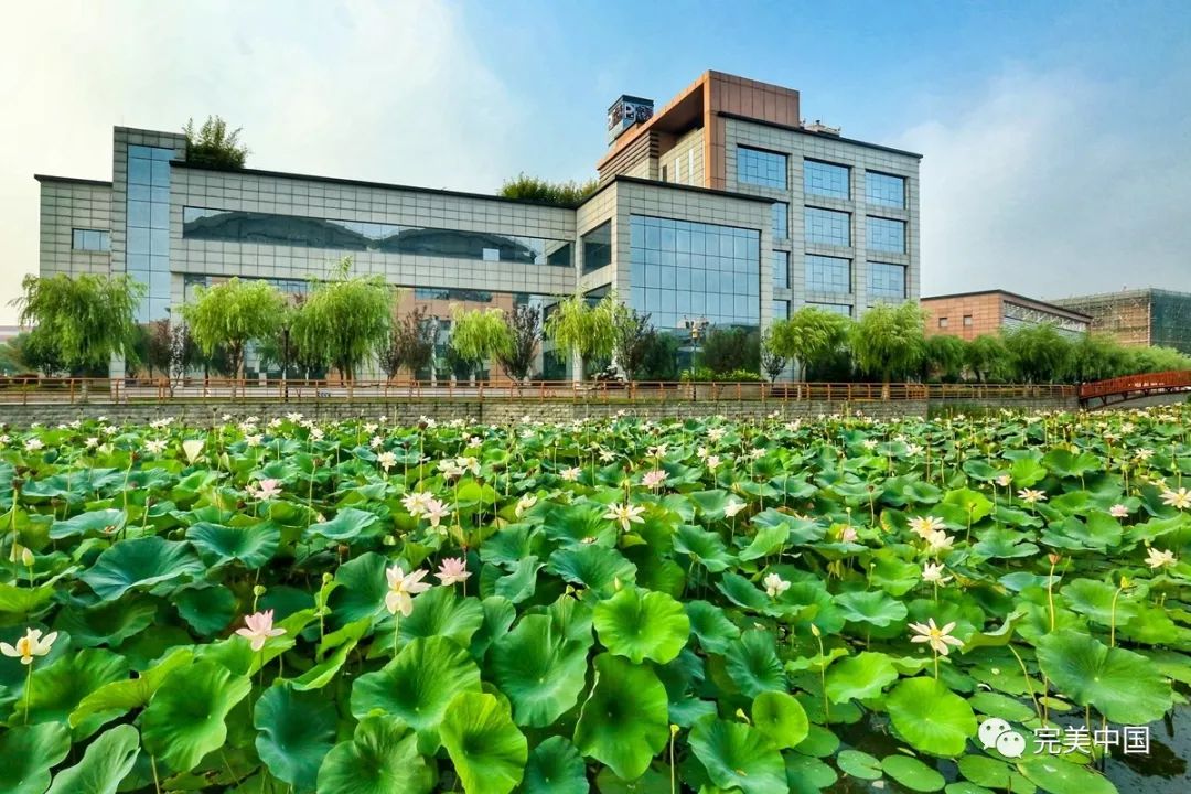 在扬州完美生产基地的观景湖中,夏日荷花倒映在水面上,水底的鱼儿群在畅游。观景湖中的湖水是由生产污水经过污水处理站处理后,达到国家合格排放标准后再次循环利用,形成鱼虾畅游、莲花绽放的休闲生态区,是完美绿色经营的缩影。