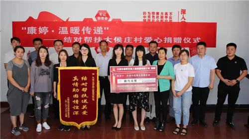 康婷集团积极响应天津市、西青区区委、区政府号召,积极主动投入到全市新一轮结对帮扶工作中来,为新一轮结对帮扶工作添砖加瓦。为解决大侯庄村村内没有娱乐休闲场地问题,区、镇政府和帮扶组加大协调力度,康婷集团更是积极参与困难村基础设施建设,为大侯庄村老年人活动场地建设项目捐赠10万元资金。扎实推进大侯庄村美丽村庄、文明村庄和平安村庄的建设。