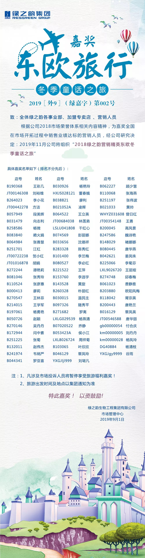 2019绿之韵营销精英东欧冬季童话之旅名单