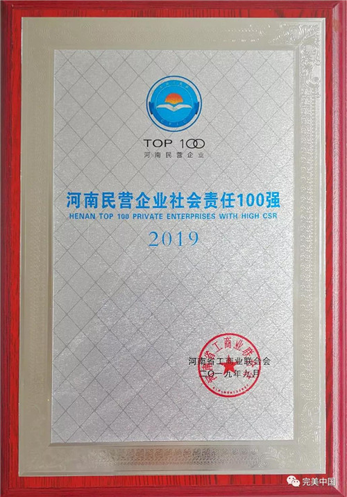 完美河南分公司多年来扎根中原、深耕市场,不懈努力,积极履行社会责任,赢得了河南省政府的认可,被授予“2019河南民营企业社会责任100强”荣誉称号。