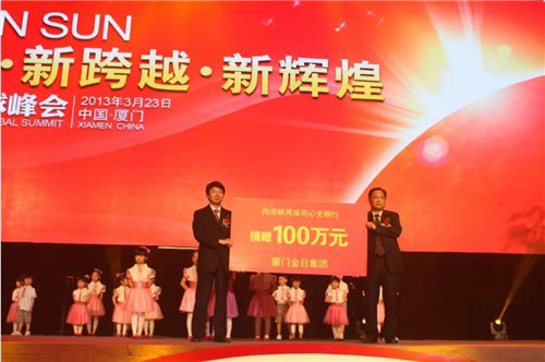 想当年,父亲独自闯荡香港,只为了让家人远离疾病和痛苦的初心;之后选择回到“第二故乡”厦门同安捐资建设学校、医院、基础卫生、文化、道路等民生工程建设,还多次在抗击非典、汶川地震、雅安地震等捐助资金和药品,支持祖国建设、回报家乡的大爱情怀。这些都是金日一直倡导和践行的“孝道与责任”、“小爱爱家、中爱敬业、大爱泽天下”的企业价值观。