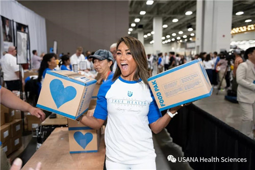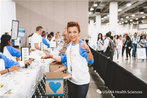 在2019 USANA Live全球年会上,USANA大家庭再一次的证明了我们有着帮助社会的无限热忱和活力四射的运动细胞。我们与USANA真正健康基金会大使和运动员们一起聚集在食品打包展台,短短4天内,我们一共打包了22,464份餐食。
