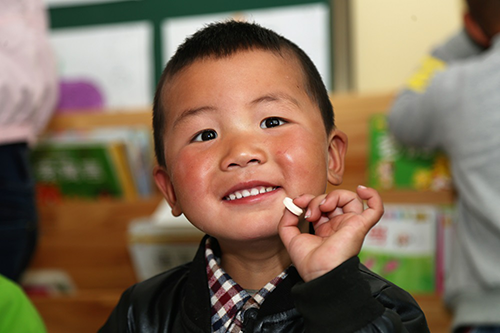 目前,“为5加油”项目已实施四年,并取得了非常显著的效果。项目已在全国青海、甘肃、山西、湖南等11省22县的806所山村幼儿园实施,受益儿童超过52000名。中国疾控中心和北京师范大学的评估报告显示,“为5加油”项目受益儿童的贫血率下降22.8%,低体重率下降44.8%,生长迟缓率下降54.5%,87%的幼儿更少生病。