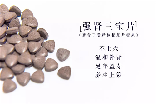 强肾三宝片选用三味食药两用名贵药材,合理配伍,采用最新工艺技术,提取有效成分。