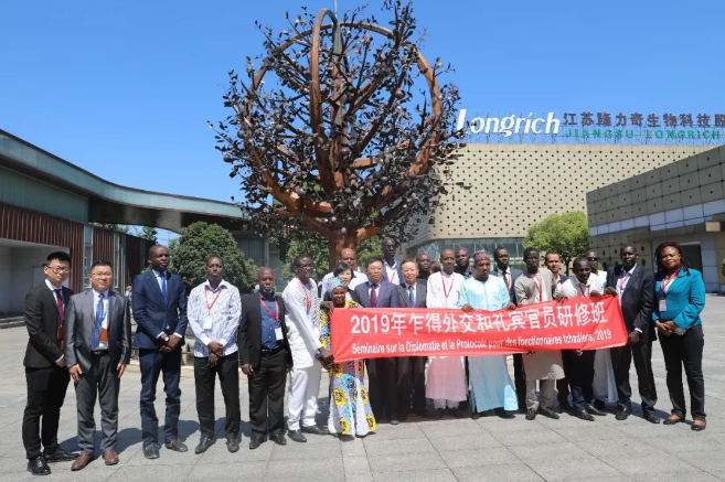 9月18日,由北京国际汉语研修学院组织的乍得外交和礼宾官员研修班一行20多人走进隆力奇参观考察。