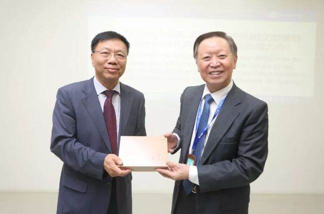 徐董与北京国际汉语研修学院国交部主任刘雁安互赠礼物