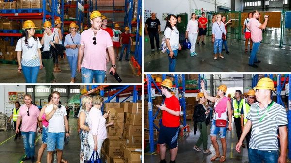 从17日下午起,来自俄罗斯、哈萨克斯坦、乌克兰、马来西亚、越南、新加坡、柬埔寨、泰国、印度尼西亚、加纳、尼日利亚、喀麦隆、南非、纳米比亚等国及中国台湾的绿叶精英陆续抵达苏州总部。在总部工作人员的陪同下,海外精英们兴致勃勃的参观了绿叶总部,近距离感受了绿叶强大的智能制造实力、科研实力和优秀的企业文化。整洁明亮的生产车间中,现代化生产线正在高效运转,采用的德国EKATO、法国KALIX、瑞士ABB机器人等先进的生产设备和质量控制系统,令海外客商惊叹不已,纷纷用手机镜头记录在绿叶科技集团总部亲眼所见的震撼画面。