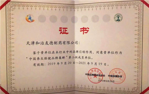 和治友德荣获“中国养生保健品牌集群”成员单位殊荣