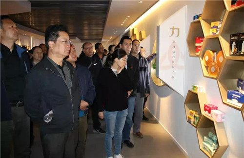 在颗粒车间,考察团组一行详细了解了公司儿科经典藏药“安儿宁颗粒”自动化生产线,听取了该款产品的生产规模、生产工艺和设备更新情况介绍。