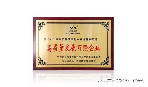 同仁堂获高质量发展百强企业荣誉称号