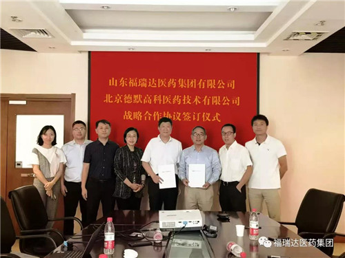 9月24日,山东福瑞达医药集团有限公司(以下称福瑞达医药集团)党委副书记、总经理贾庆文带队赴北京,与北京德默高科医药技术有限公司(以下称德默高科)研发团队进行交流,并签订战略合作协议。
