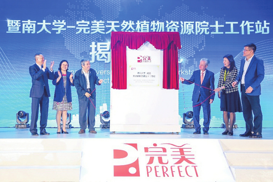 ▲暨南大学-完美天然植物资源院士工作站揭牌