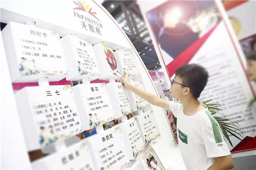 展会上,无限极展位独特的造型,也吸引了不少眼球。展位的造型柱以无限极健康产品中草药原料之一的赤灵芝为原型,还设计了蜂巢展柜展示7种中草药原料,浓郁的中草药风,引得许多公众和业务伙伴合影留念。