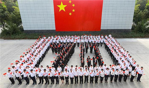 一日之计在于晨,安惠人每天都会以开展早会的形式,在各自的工作岗位,齐诵安惠企业文化,同唱一首歌《安惠一家人》。在喜迎国庆的特殊日子里,9月30日上午9点,安惠员工齐聚安惠会议中心门前,在一面长12米、宽8米,面积近100平方米巨型国旗的映衬下,排成“70”队列。在总经理室成员的带领下,全体安惠员工共同高声诵读安惠企业文化。随着音乐响起,安惠人同唱一首歌《我和我的祖国》,把活动推向高潮。大家挥舞着手中的小红旗,跟着旋律激情澎湃地歌唱,把最美的歌声和最好的祝福献给祖国。安惠人以庄严神圣的方式,抒发对伟大祖国的热爱,展现出安惠人的风采。活动现场,安惠员工排的“70”队列与巨型国庆相呼应,烘托出浓厚的节日氛围,在场的安惠人无不动容,爱国之情油然而生。