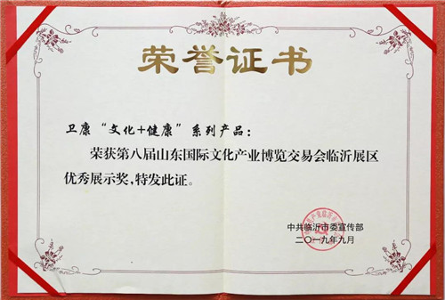 卫康“文化+健康”系列产品荣获本届文博会临沂展区“优秀展示奖”。