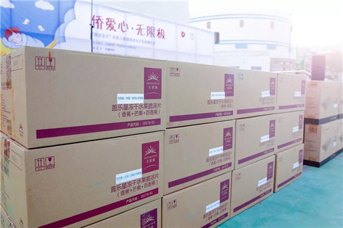活动现场,黄健龙先生代表无限极为该地区的贫困小学生捐赠享优乐牌成长枕和无限极牌盖乐星冻干水果脆溶片。