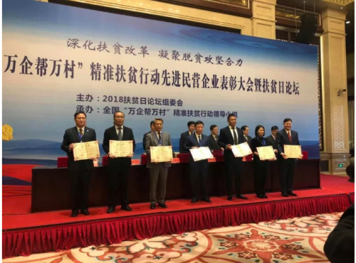 2018年10月,凭借创新的扶贫模式和高效的扶贫行动,天士力在全国4万余家参与精准扶贫行动的民营企业中脱颖而出,荣获国务院扶贫办、全国工商联颁发的全国“万企帮万村”精准扶贫行动先进民营企业称号。