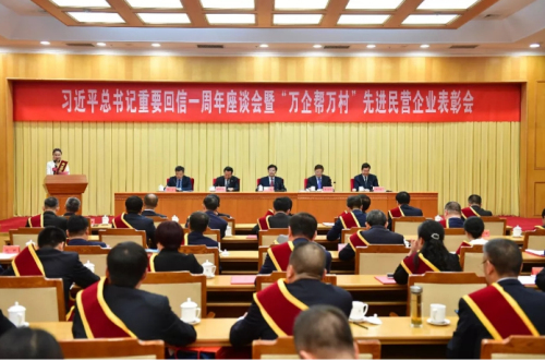 高云龙主席在讲话中指出,新中国70年创造了人类减贫奇迹,为世界减贫事业贡献了中国力量、中国方案、中国智慧。广大民营企业致富思源、富而思进,与党同心同向同行,与各民族同胞同呼吸共命运,特别是踊跃投身“万企帮万村”精准扶贫行动,取得了骄人成绩。习近平总书记亲自给“万企帮万村”行动中受表彰民营企业家回信,激发民营企业家新担当、新作为。
